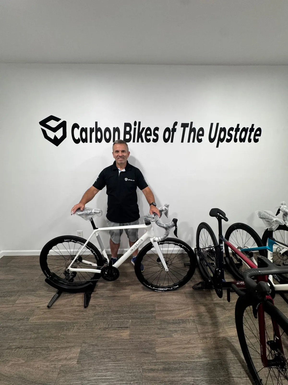 "I was visiting several shops in Greenville looking for a carbon bike, and after going to multiple places, I came across a small store with an amazing owner. Ray showed me and explained every detail of his products. His unique charisma, without mentioning the word “sale,” had already convinced me to leave with my new bike. I recommend Carbon Bike Upstate. Thank you, Ray—I’ll be back for more product"